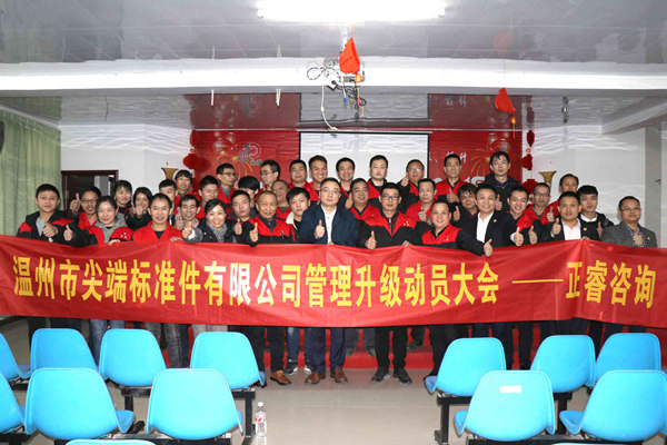 2017年12月19日,溫州市尖端標(biāo)準(zhǔn)件有限公司管理升級啟動大會正式召開。尖端公司總經(jīng)理涂其華與廣東正睿企業(yè)管理研究院副院長龐金森共同出席了啟動大會